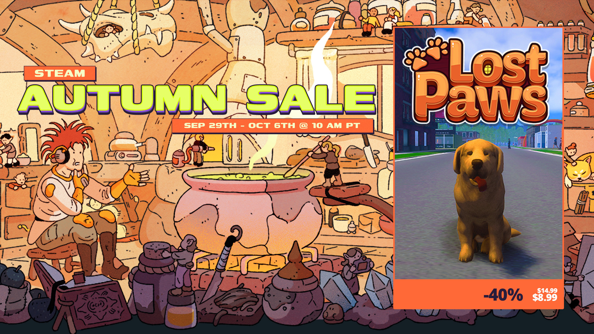 We are happy to announce that Lost Paws will be on sale by 40% off during the Steam Spring Sale! Now is still the best time to get into dog survival with the recent trading and crafting update. Pick it up for yourself or a friend here: Store.steampowered.com